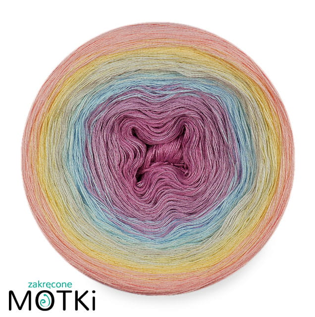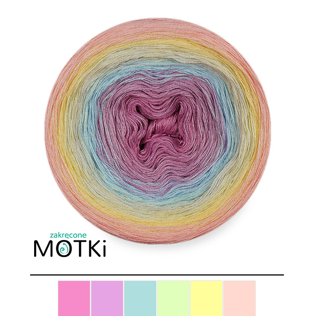 (6) Włóczka Ombre bawełna/akryl B710a: wrzos/ jasny fiolet/ jasny błękit/ jasna pistacja/ jasny żółty/ jasny róż