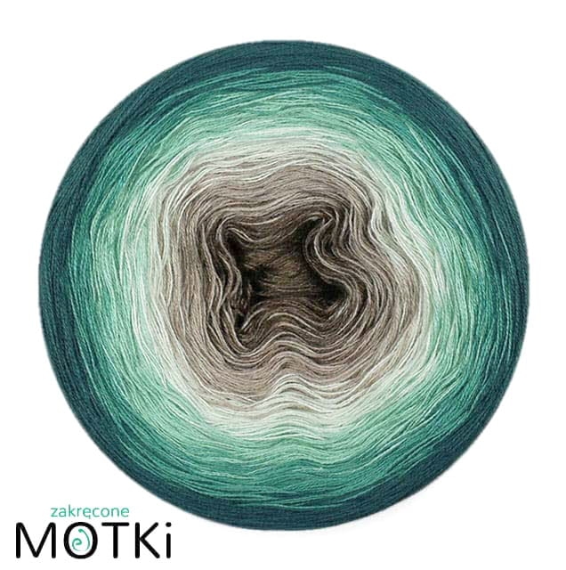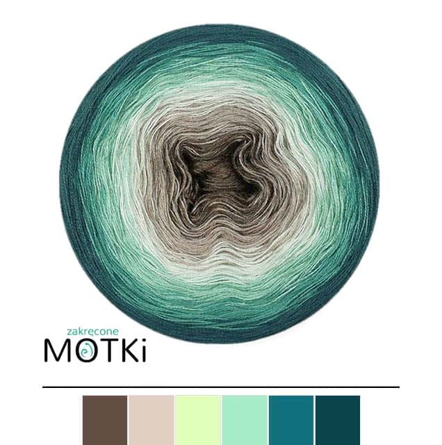 (6) Włóczka Ombre bawełna/akryl B719: zimny brąz melanż/ zimny beż/ jasna pistacja/ patyna/ jasny petrol/ petrol