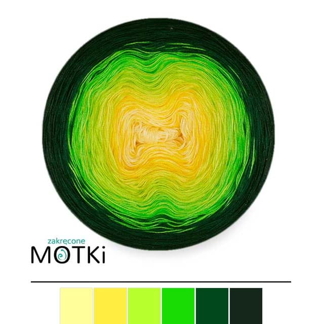 (6) Włóczka Ombre bawełna/akryl B761: jasny żółty/ słoneczny żółty/ neonowa zieleń/ zielone jabłuszko/ butelkowa zieleń/ ciemna butelka