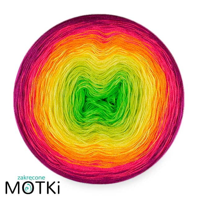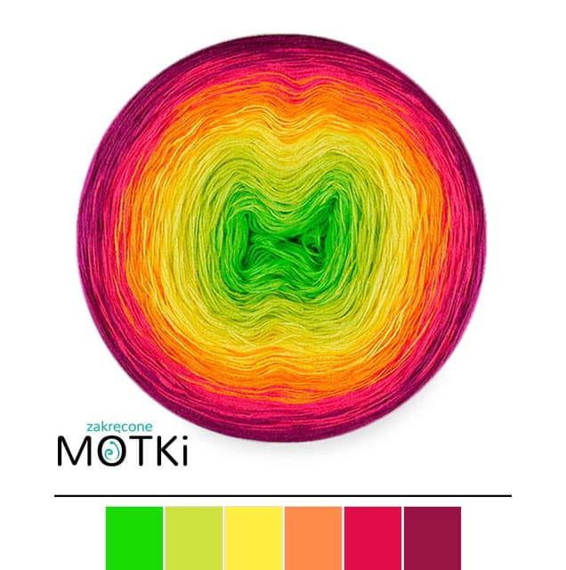 (6) Włóczka Ombre bawełna/akryl B769: zielone jabłuszko/ kiwi/ słoneczny żółty/ mango/ piwonia/ jeżyna