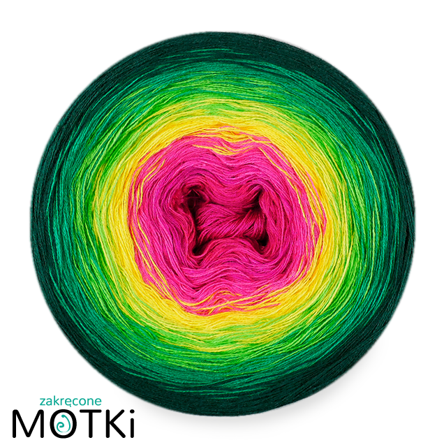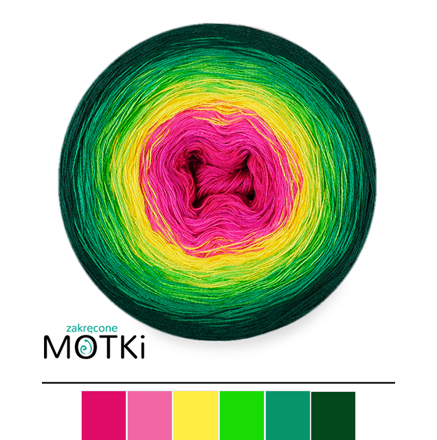 (6) Włóczka Ombre bawełna/akryl B776: fuksja/ jasna fuksja/ słoneczny żółty/ zielone jabłuszko/ absynt/ butelkowa zieleń