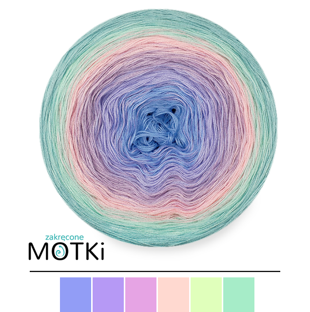 (6) Włóczka Ombre bawełna/akryl B777: błękit/ krokus/ jasny fiolet/ jasny róż/ jasna pistacja/ patyna