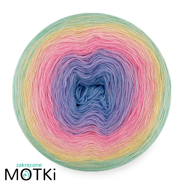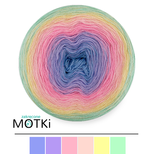 (6) Włóczka Ombre bawełna/akryl B787: błękit/ krokus/ landrynkowy róż/ jasny róż/ jasny żółty/ pistacja