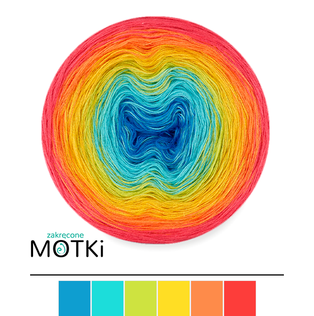 (6) Włóczka Ombre bawełna/akryl B804: lazur/ turkus/ kiwi/ żółty/ mango/ koral