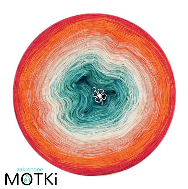 (6) Włóczka Ombre bawełna/akryl Dzień Matki 6: jasny petrol/ patyna/ krem/ łososiowy róż/ mango/ koral