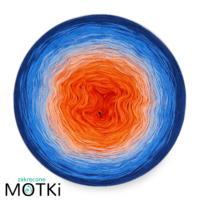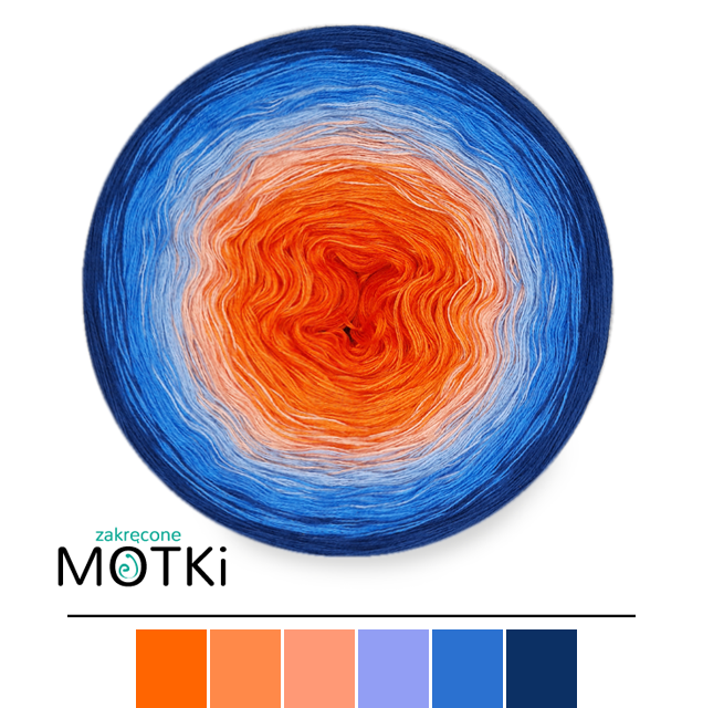 (6) Włóczka Ombre bawełna/akryl S9: pomarańcz/ mango/ łososiowy róż/ błękit/ atrament/ ciemny niebieski