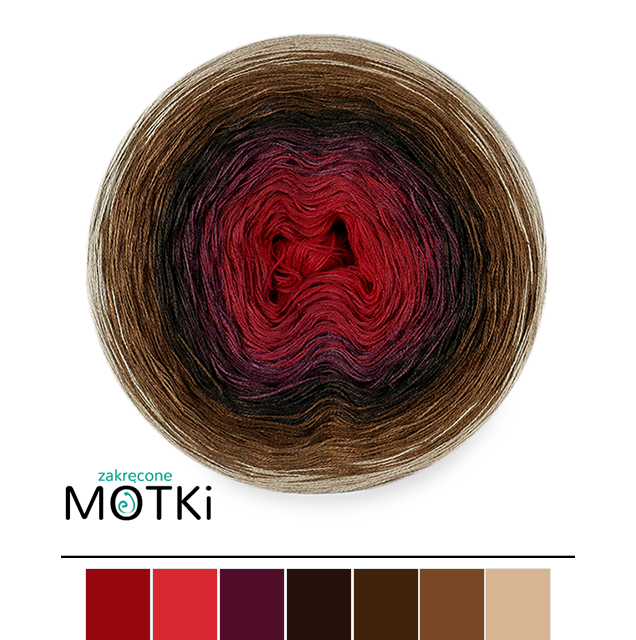 (7) Włóczka Ombre bawełna/akryl B639: burgund/ malaga/ wino/ czekolada/ brąz/ orzech/ ciemny beż