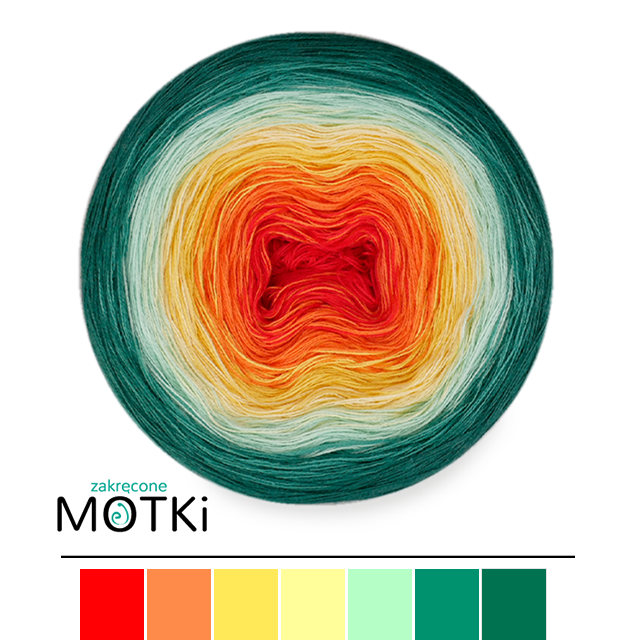 (7) Włóczka Ombre bawełna/akryl B823a: intensywna czerwień/ mango/ intensywny żółty/ jasny żółty/ pistacja/ morski/ ciemny szmaragd