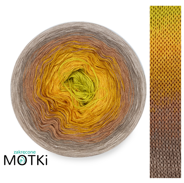 (7) Włóczka Ombre bawełna/akryl B861a: limetka/ kurkuma/ curry/ ciepły brąz/ szaro-beżowy/ ciemny beż