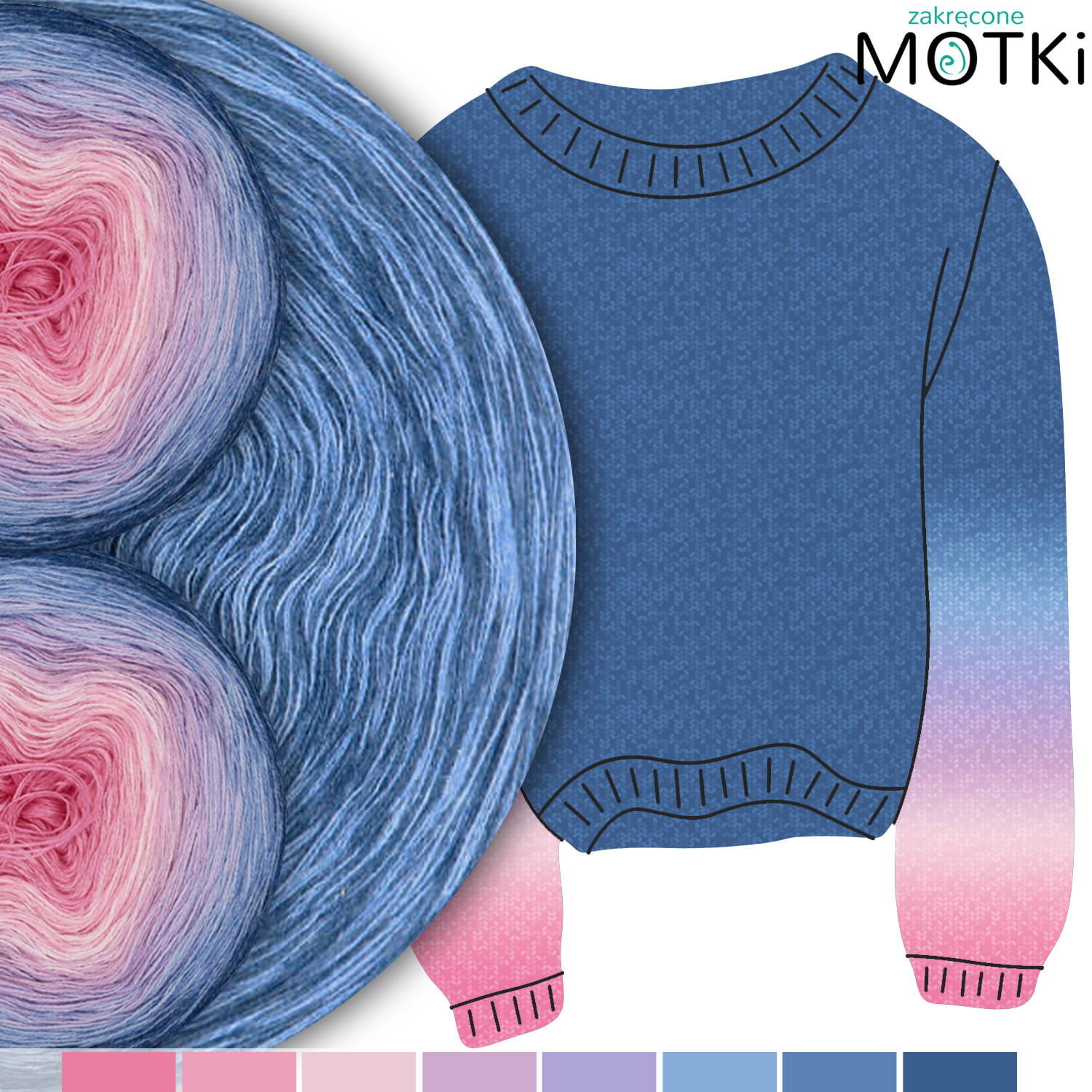 (8) Komplet motków na Sweterek Autostop: magneta/ landrynka/ pastelowy róż/ jasny fiolet/ krokus/ błękit/ jeans/ indygo