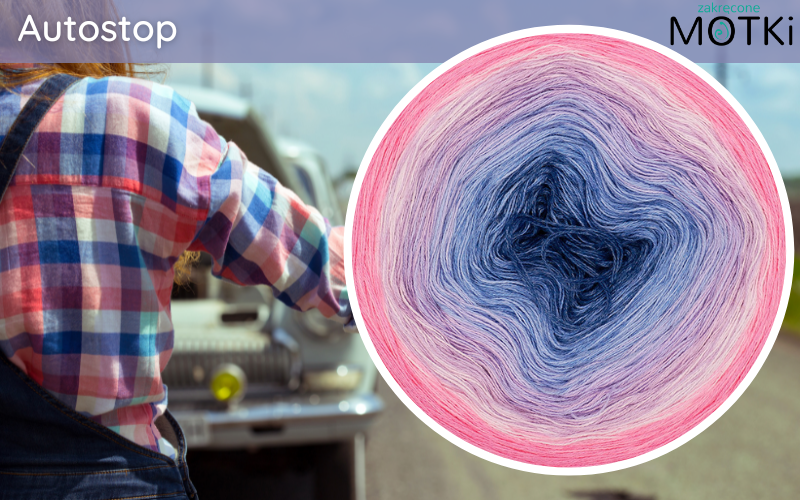 (8) Motek Ombre bawełna/akryl Autostop: indygo/ jeans/ błękit/ krokus/ jasny fiolet/ pastelowy róż/ landrynka/ magneta