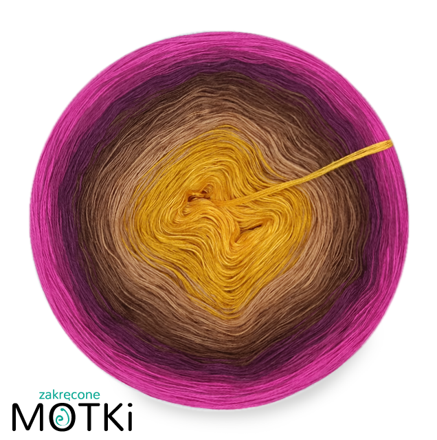 (8) Motek Ombre bawełna/akryl Jeszcze tylko jeden rządek: kurkuma/ curry/ ciepły brąz/ orzech/ brąz/ ciemna jeżyna/ jeżyna/ fuksja