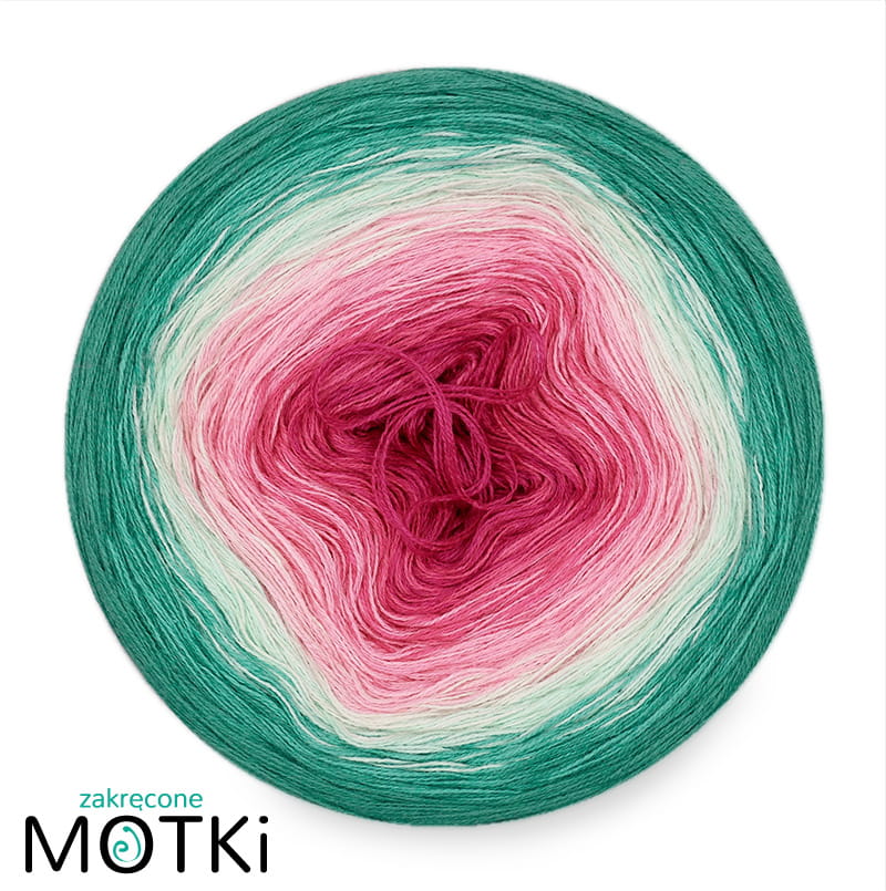 (8) Motek Ombre bawełna/akryl Letni drink: fuksja/ jasna fuksja/ magneta/ landrynka/ jasna pistacja/ pistacja/ opal/ morski