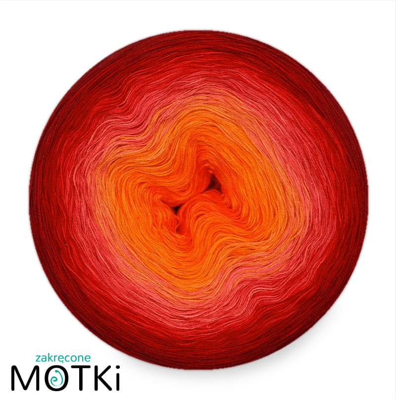 (8) Motek Ombre bawełna/akryl Maczek: pomarańcz/ jasny pomarańcz/ mango/ jasny koral/ koral/ intensywna czerwień/ czerwień/ burgund