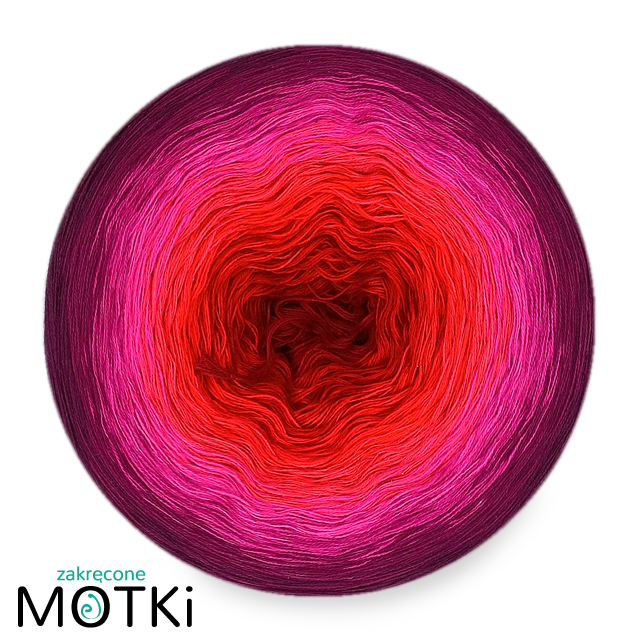 (8) Motek Ombre bawełna/akryl OK6: burgund/ czerwień/ intensywna czerwień/ koral/ jasna fuksja/ fuksja/ jeżyna/ ciemna jeżyna