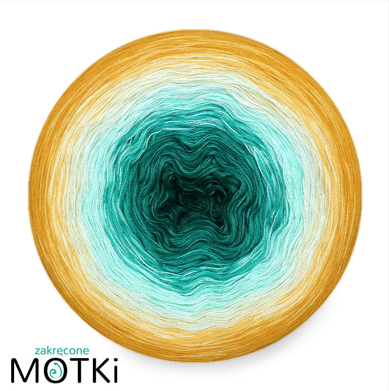 (8) Motek Ombre bawełna/akryl Orient: ciemny szmaragd/ morski/ opal/ ciemna pistacja/ jasna pistacja/ jasny żółty/ intensywny żółty/ kurkuma