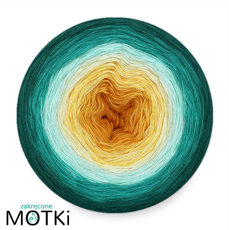(8) Motek Ombre bawełna/akryl Orient: kurkuma/ intensywny żółty/ jasny żółty/ jasna pistacja/ ciemna pistacja/ opal/ morski/ ciemny szmaragd