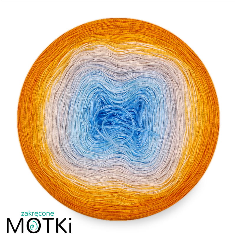 (8) Motek Ombre bawełna/akryl Piaski oceanu: baby blue/ jasny błękit/ jasny niebieski/ popielaty/ krem/ intensywny żółty/ żółty/ kurkuma