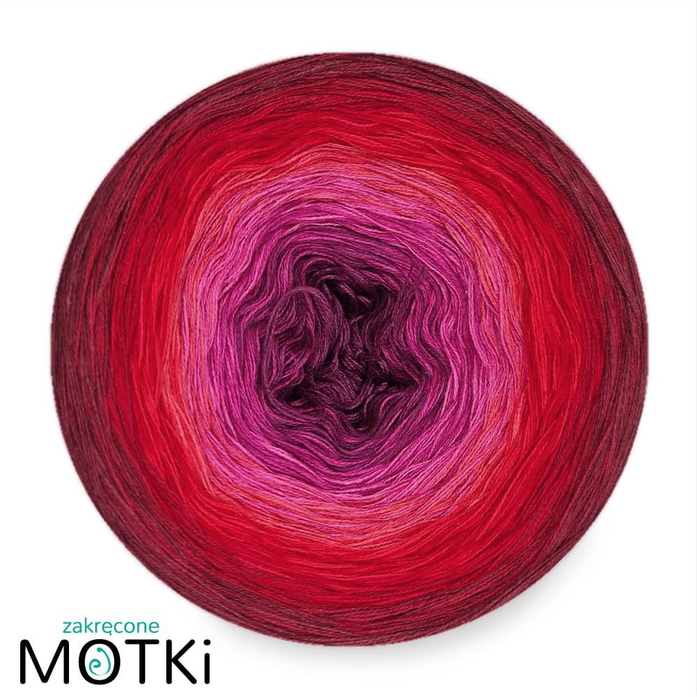 (8) Motek Ombre bawełna/akryl Randka w Paryżu: jeżyna/ fuksja/ jasna fuksja/ koral/ intensywna czerwień/ czerwień/ burgund/ malaga