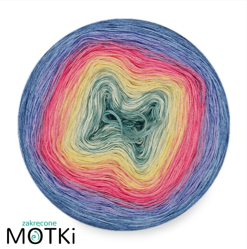 (8) Motek Ombre bawełna/akryl Sen Jednorożca: patyna/ pistacja/ jasny żółty/ landrynkowy róż/ magneta/ krokus/ błękit/ jeans