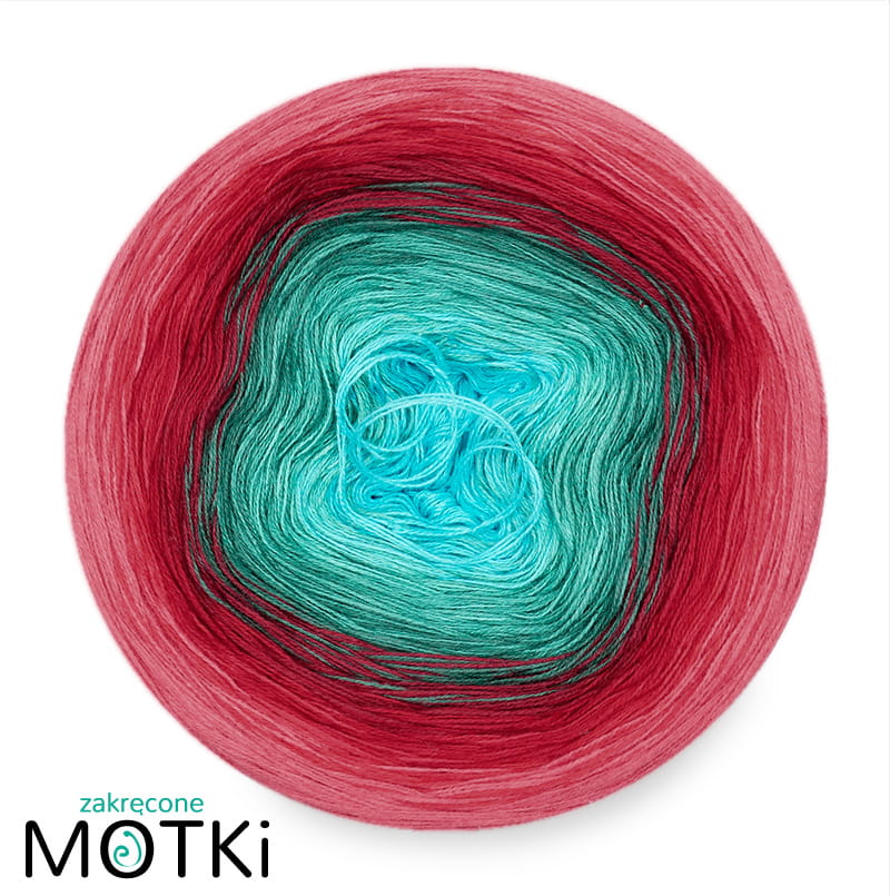 (8) Motek Ombre bawełna/akryl Serce oceanu: turkus/ opal/ morski/ ciemny szmaragd/ burgund/ czerwień/ intensywna czerwień/ koral