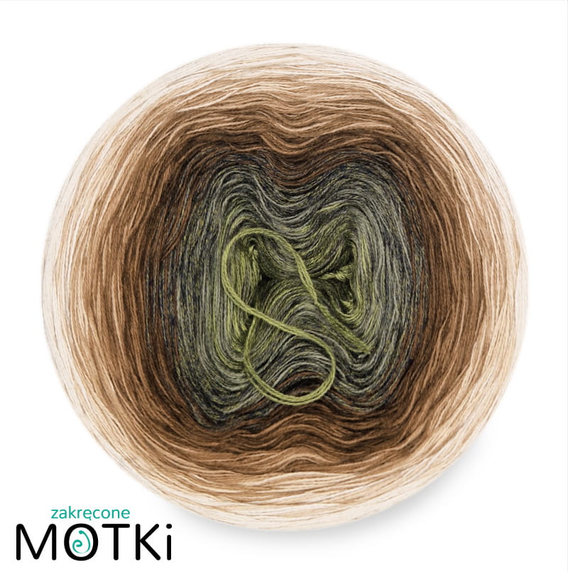 (8) Motek Ombre bawełna/akryl Sosnowy Las: jasna wojskowa zieleń/ khaki/ wojskowa zieleń/ brąz/ orzech/ glina/ ciepły beż/ pudrowy beż