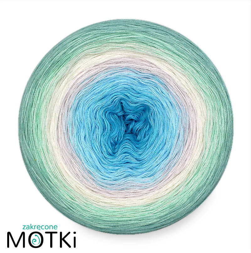 (8) Motek Ombre bawełna/akryl Spokojne wody: cyjan/ baby blue/ jasny błękit/ popiel/ pudrowy beż/ jasna pistacja/ pistacja/ patyna