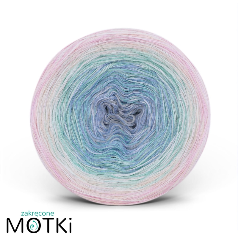 efekt ombre melanżowy – stopniowe przechodzenie kolorów bez powtarzania tych samych odcieni (w motku nie znajdziesz trzech identycznych nitek obok siebie),