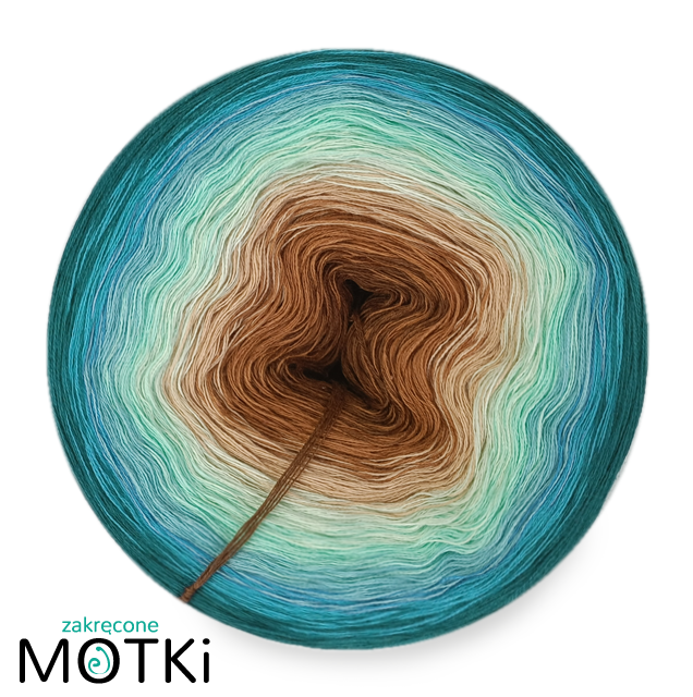 (8) Włóczka Ombre bawełna/akryl Rajska wyspa: orzech/ ciepły brąz/ ciepły beż/ jasna pistacja/ pistacja/ patyna/ jasny petrol/ petrol