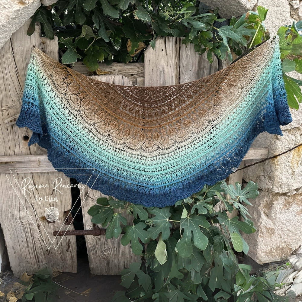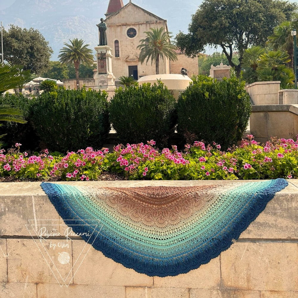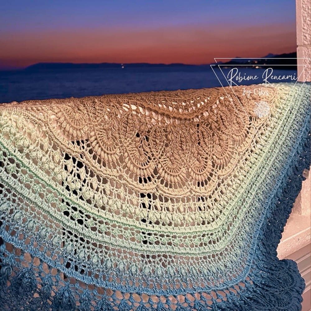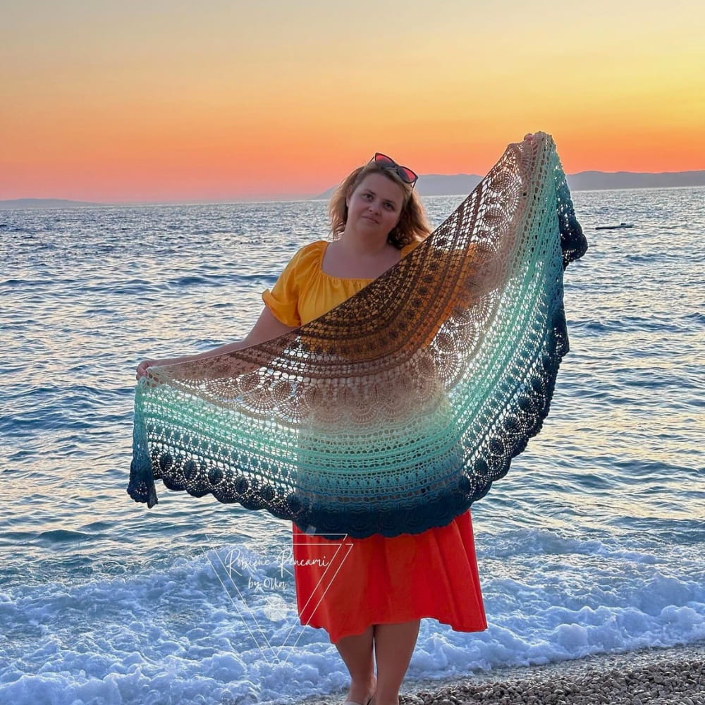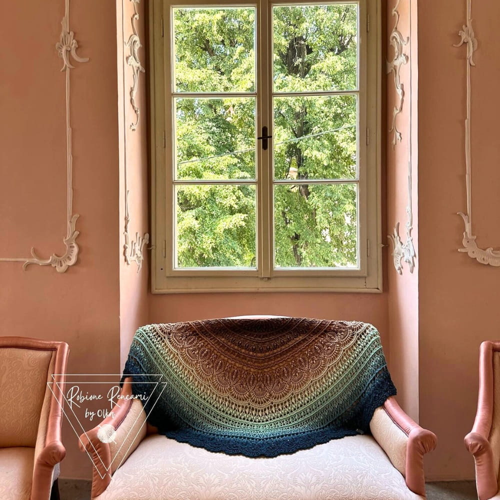Zdjęcia chusty wykonanej przez Robione Rencami by Olka, wzór Trosca autorstwa Pomysłowa Manufaktura