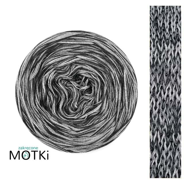 Zakręcony Motek o składzie 50% wełna merynos i 50% akryl, zwinięty ręcznie z 6 nitek.