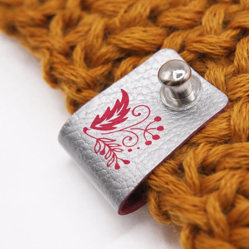 Ekoskóra Leatherette Zalecane pranie w 30 ̊ Grubość 1,2 mm Skóra sztuczna przeznaczona do grawerowania laserowego, przez to jakość graweru jest niezwykle wysoka. Jest uniwersalna, metki z tej ekoskóry będą świetnym wykończeniem każdej rzeczy, zarówno jak i plecaka czy koszyka, tak i chusty z ciężkiej bawełny czy czapeczki dziecięcej.