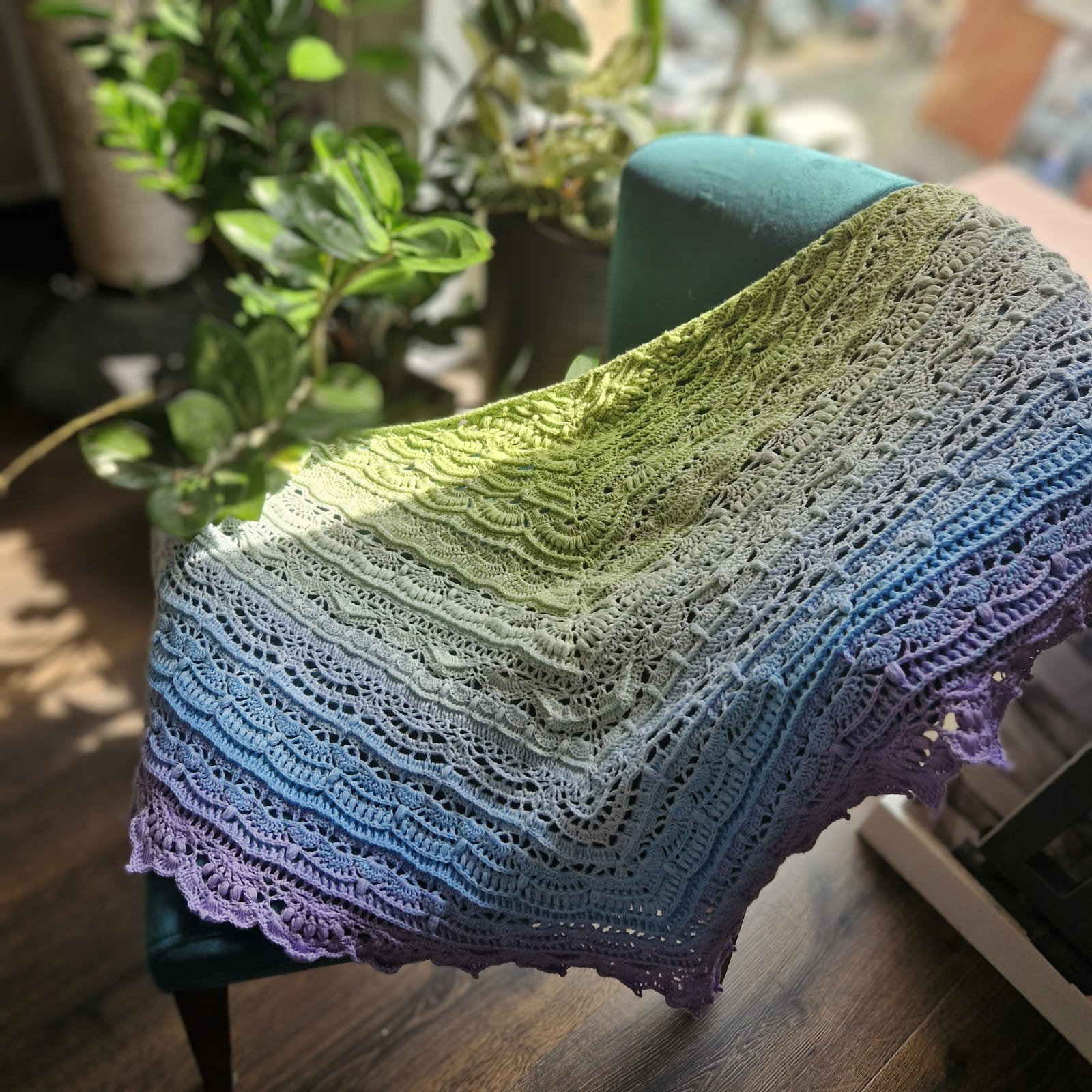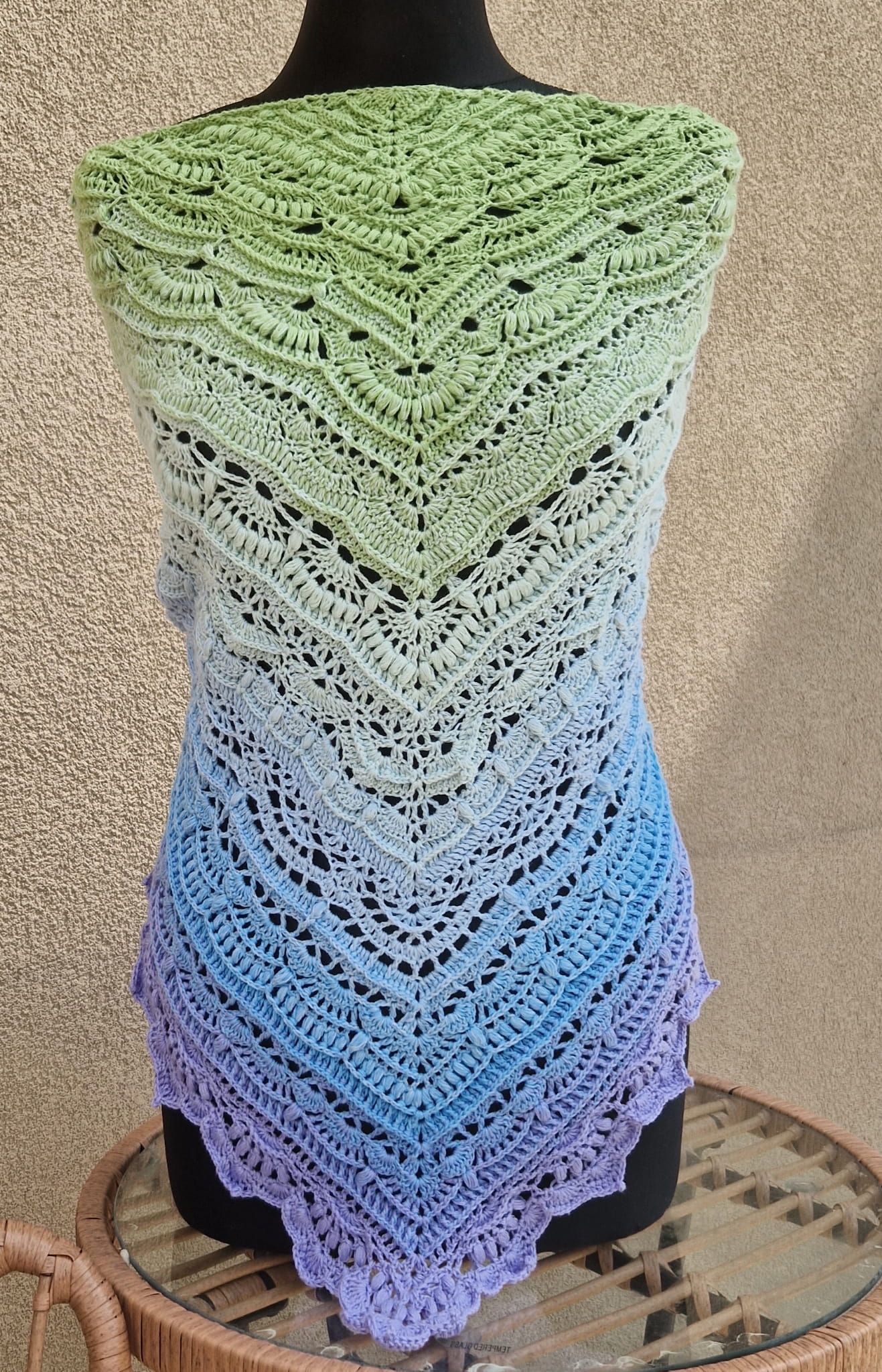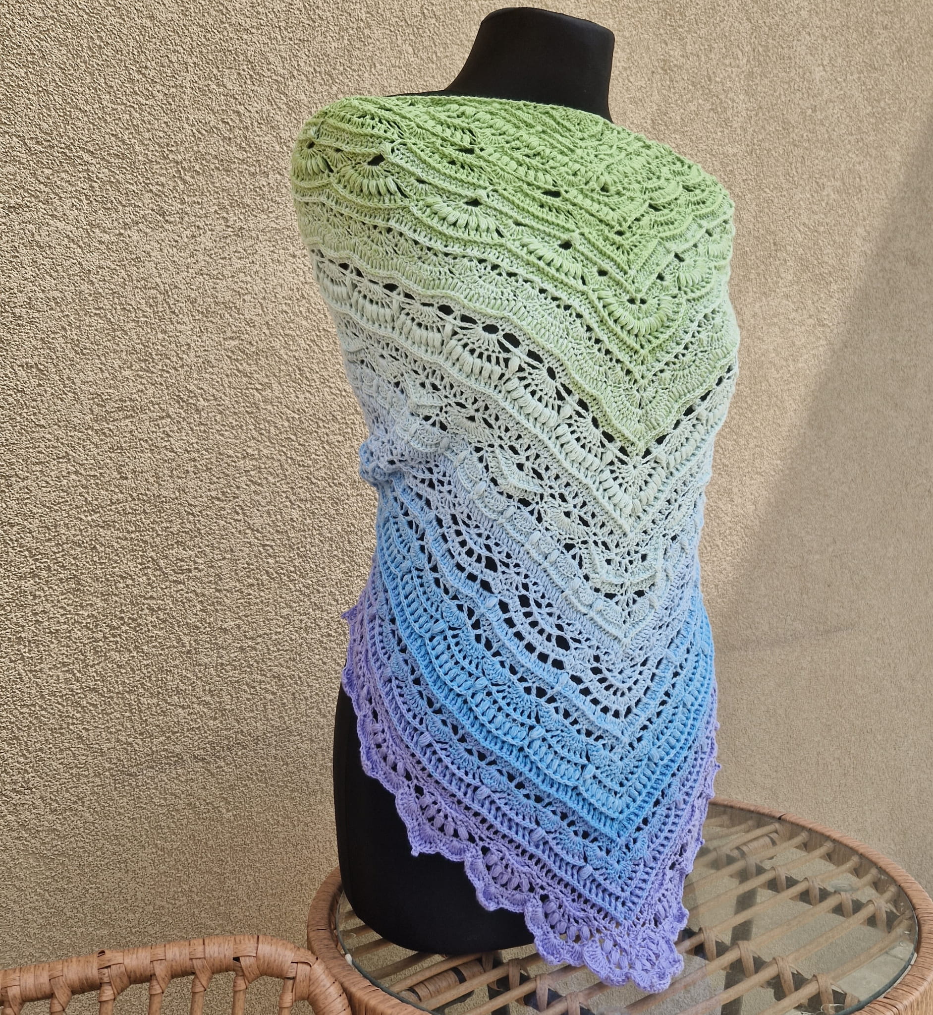 Wymiary chusty: 165x70 cm, szydełko 3 mm