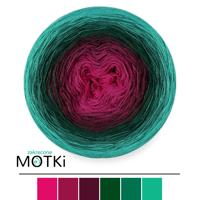 Włóczka Ombre bawełna/akryl B493: fuksja/ jeżyna/ wino/ butelkowa zieleń/ ciemny szmaragd/ opal