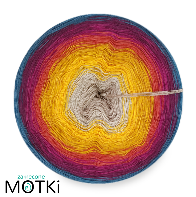 Motek posiada niepełne przejścia kolorystyczne – oznacza to, że na żadnym etapie wszystkie nitki nie są jednocześnie w tym samym odcieniu. To sprawia, że efekt ombre jest jeszcze bardziej płynny i miękki wizualnie, a gotowe wyroby wyglądają lekko i harmonijnie.
