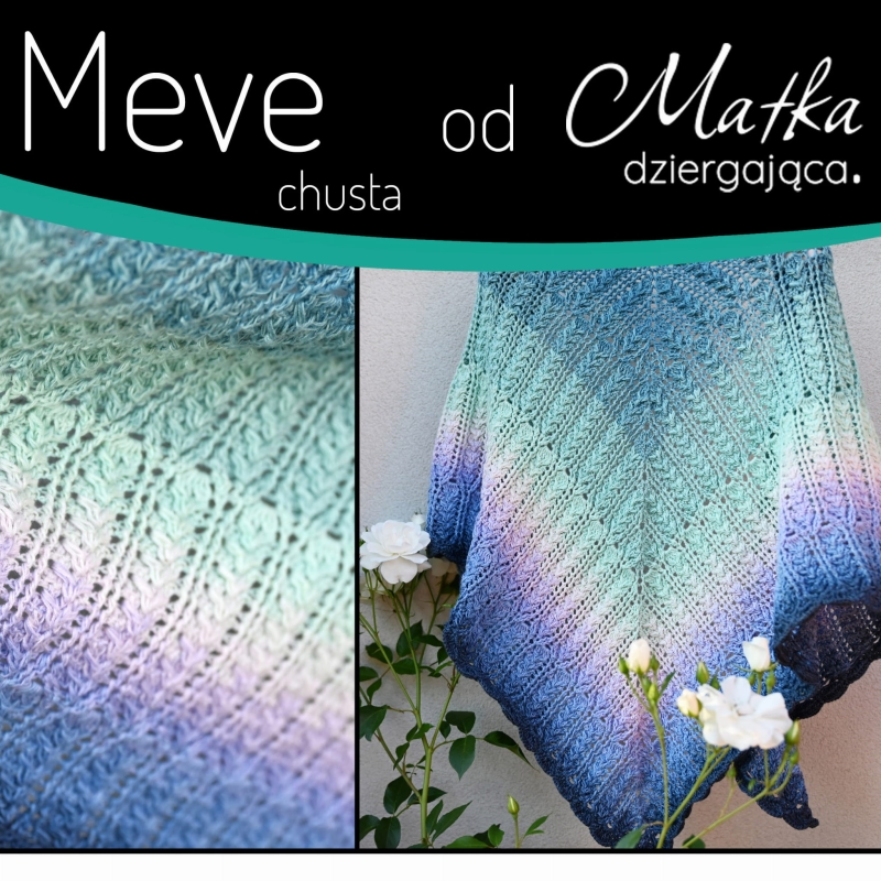 Wymiary chusty: Motek 1650 m, 3 nitki, szydełko nr 3.25 wymiary: 185 cm najdłuższy bok.