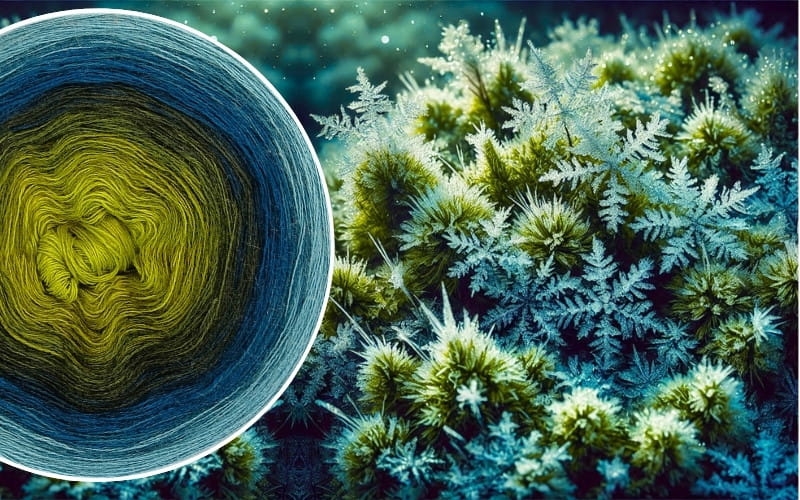 (8) Szron na Mchu - Włóczka Ombre - Merino/akryl: limonka/ oliwka/ ciemna oliwka/ khaki/ petrol/ navy/ morski/ patyna