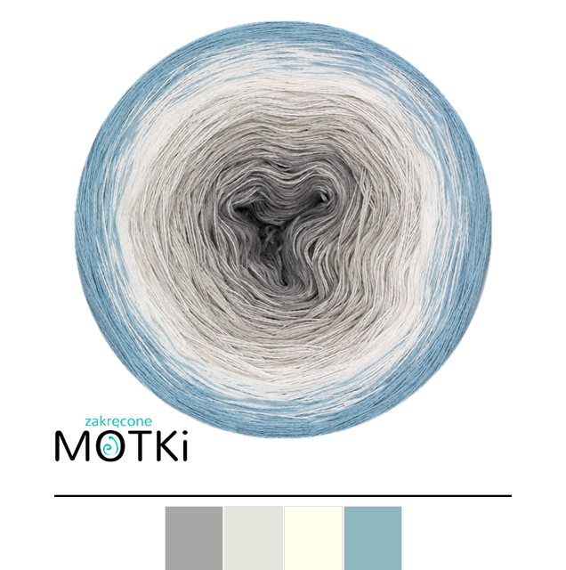 Taniec Pingwinów to włóczka w eleganckiej, chłodnej palecie barw, inspirowana prostotą i rytmem natury – nawiązująca do obchodzonego w kwietniu Dnia Pingwina. Odcienie szarości, jasnego szarego, latte i patyny układają się w harmonijny gradient, który sprawia wrażenie subtelnego ruchu i równowagi. Motek posiada pełne przejścia kolorystyczne, co oznacza, że wszystkie nitki jednocześnie przechodzą w kolejny kolor.