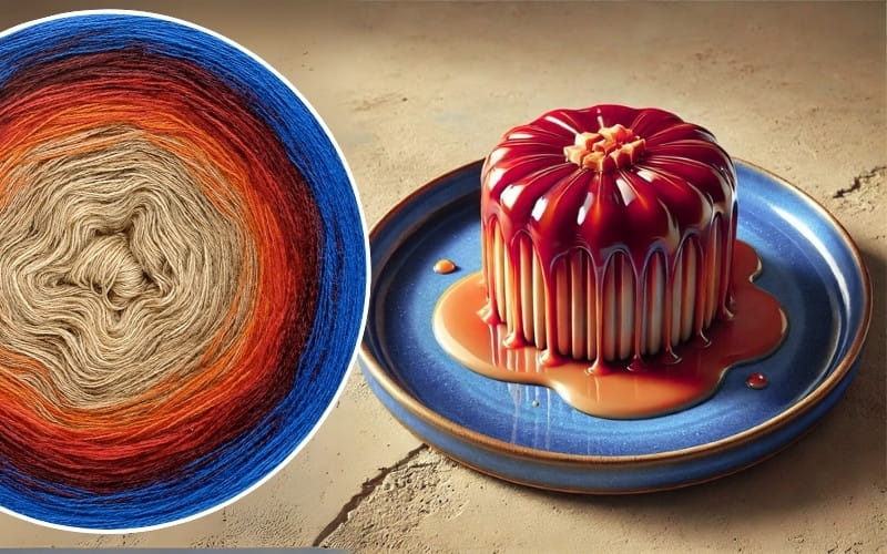 (8) Toffi na Fali - Włóczka Ombre - Merino/akryl: ciepły beż/ toffi/ ciepły brąz/ rudy/ czerwień/ bordo/ wino/ ciemny niebieski