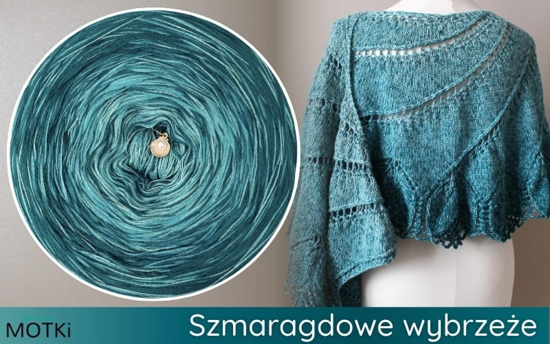 Szmaragdowe wybrzeże Włóczka ombre 8 nitek na druty merino/akryl ombre na 4 nitkach: jasna patyna/ patyna/ morski/ ciemny szmaragd + melanż 4 nitki: jasna patyna/ patyna/ morski/ ciemny szmaragd